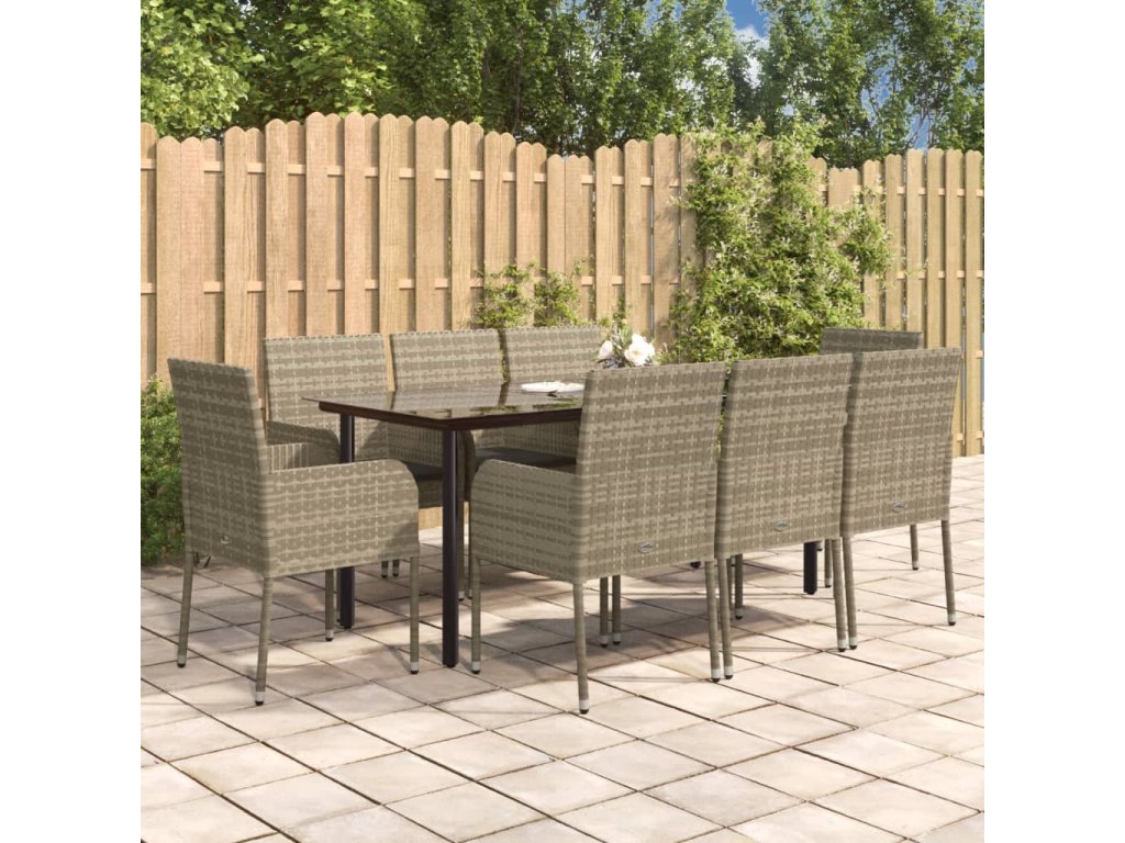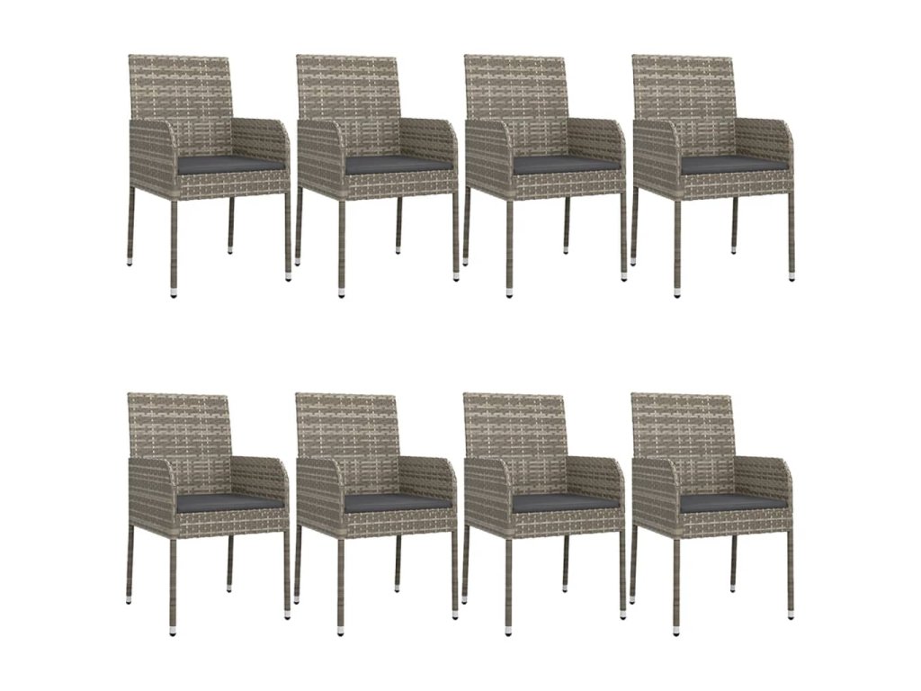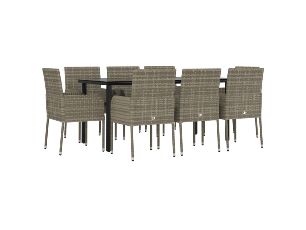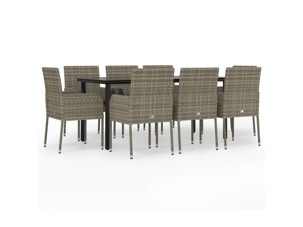9dílný zahradní jídelní set s poduškami černý a šedý polyratan 3185164