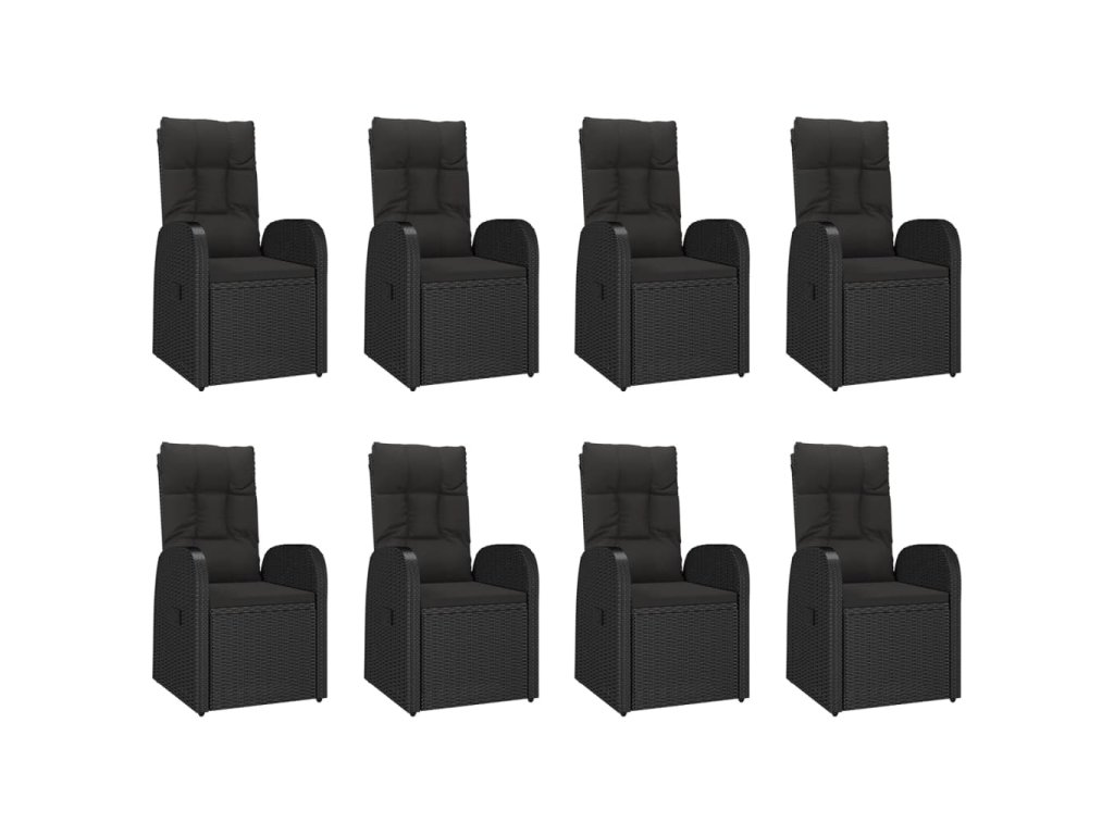 9dílný zahradní jídelní set s poduškami černý polyratan 3157604