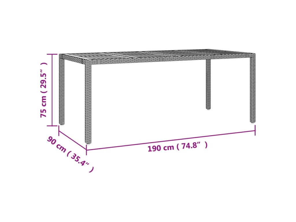 - Materiál: PE ratan, ocel, masivní akáciové dřevo s olejovou povrchovou úpravou