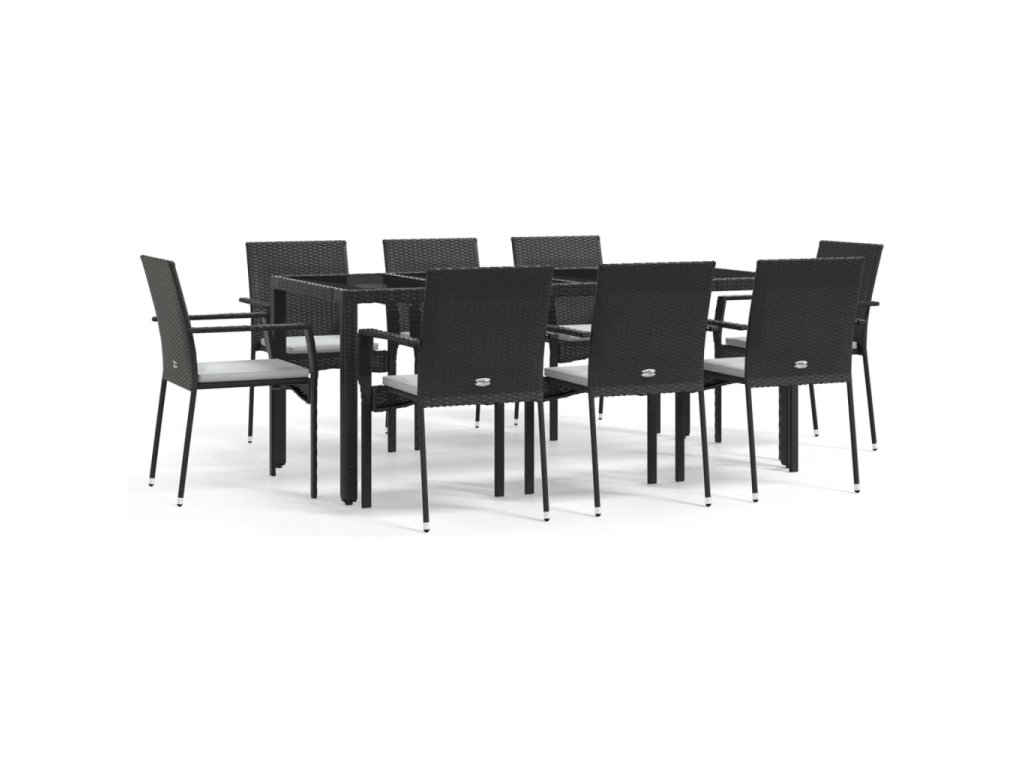 9dílný zahradní jídelní set s poduškami černý polyratan 3184980