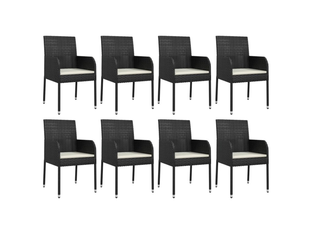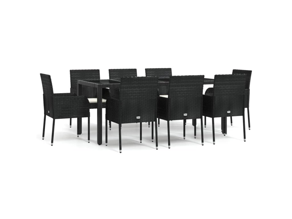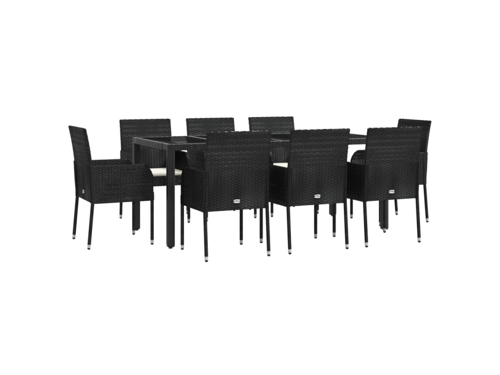 9dílný zahradní jídelní set s poduškami černý polyratan 3185004