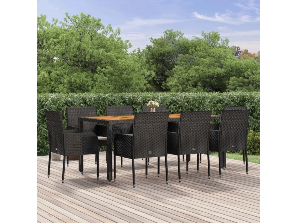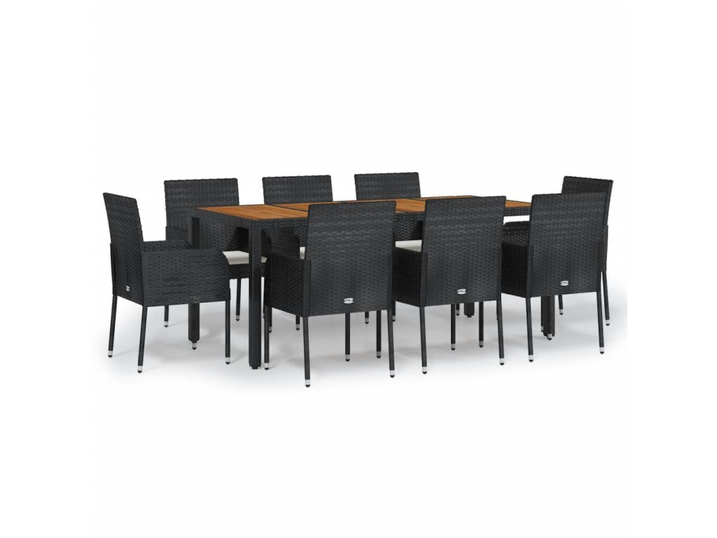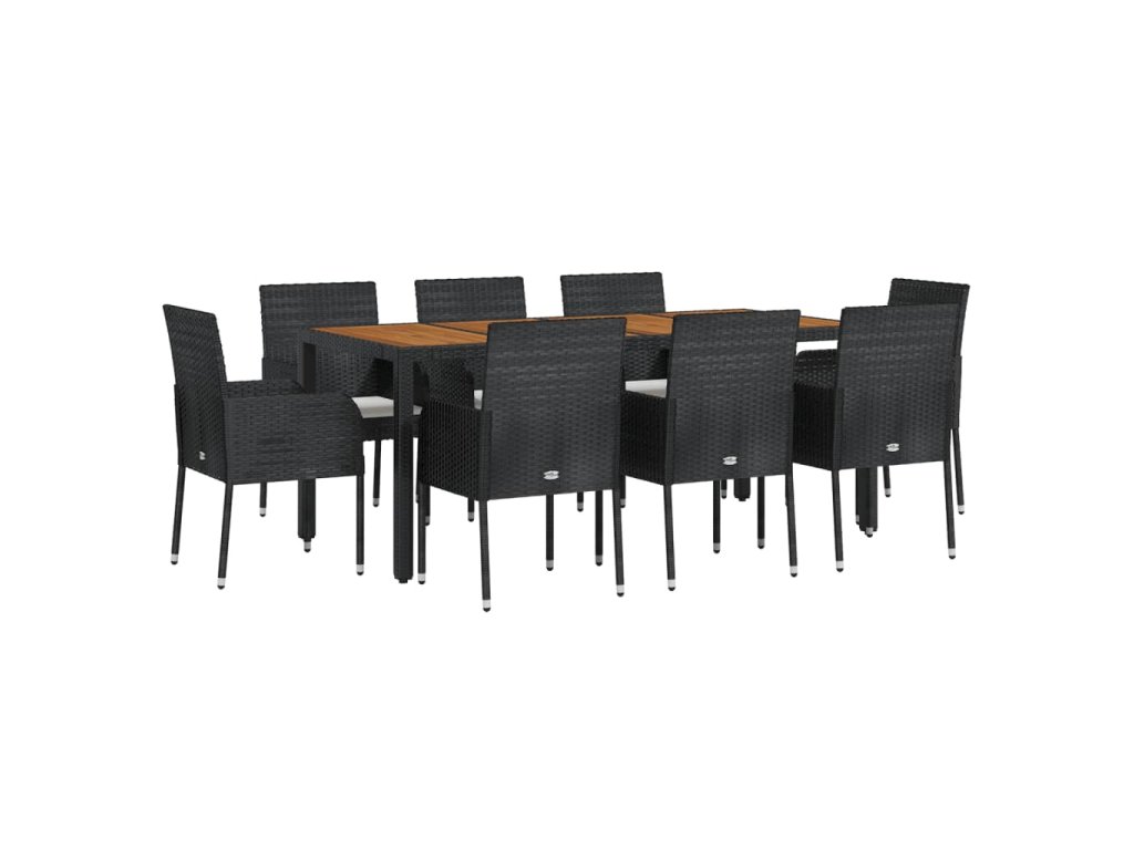 9dílný zahradní jídelní set s poduškami černý polyratan 3185016