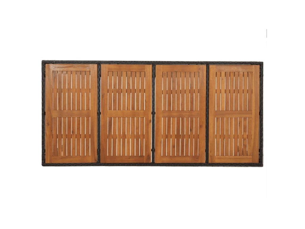 - Materiál: PE ratan, práškově lakovaná ocel, masivní akáciové dřevo s olejovou povrchovou úpravou
