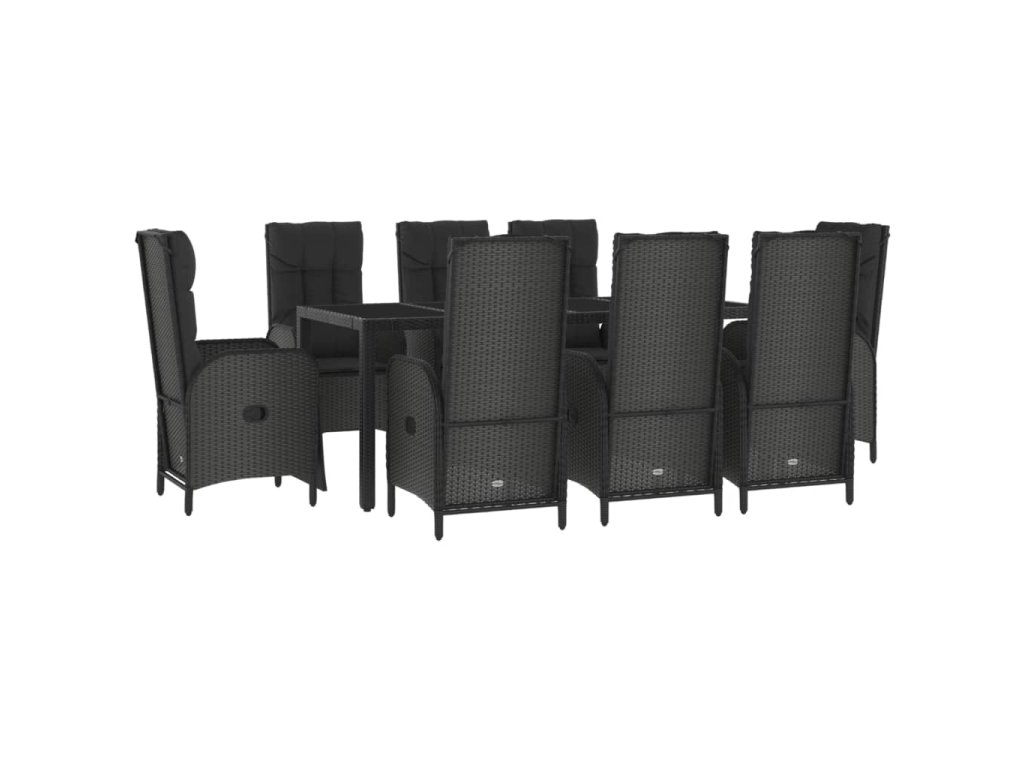 9dílný zahradní jídelní set s poduškami černý polyratan 3185067
