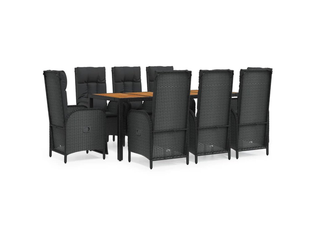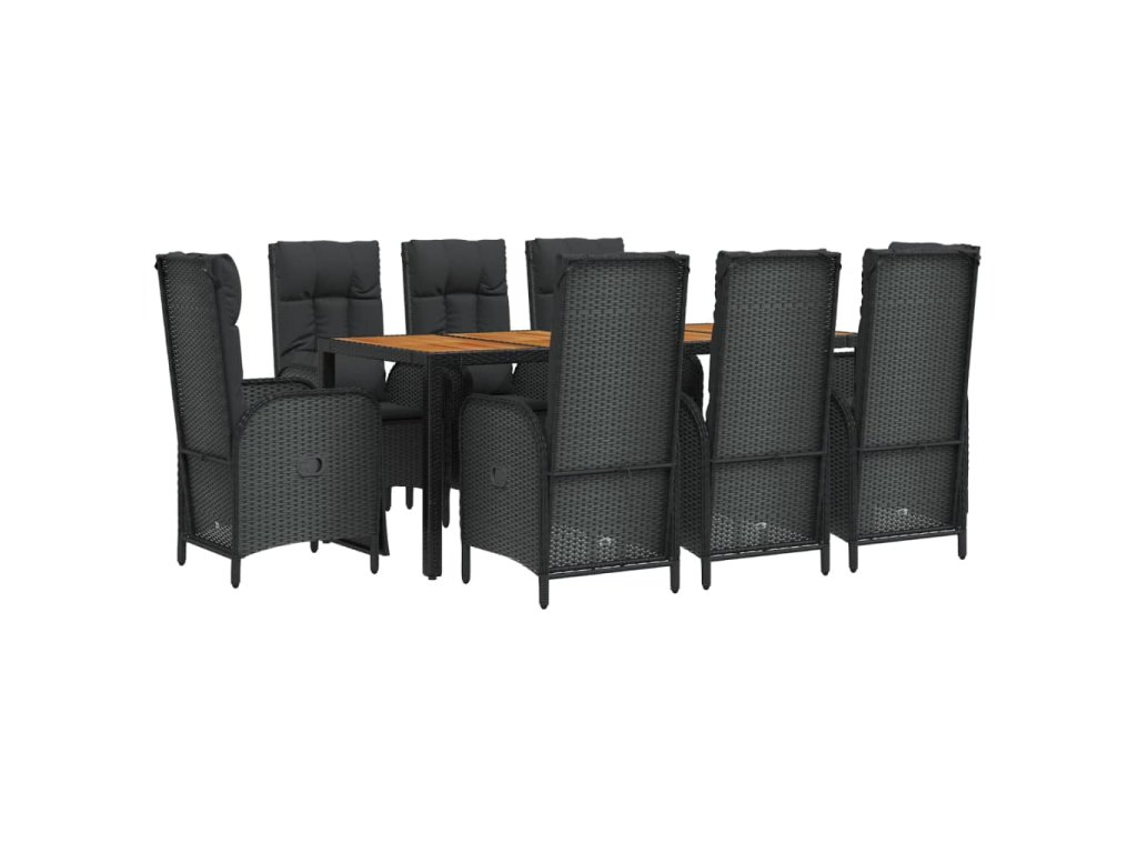 9dílný zahradní jídelní set s poduškami černý polyratan 3185082