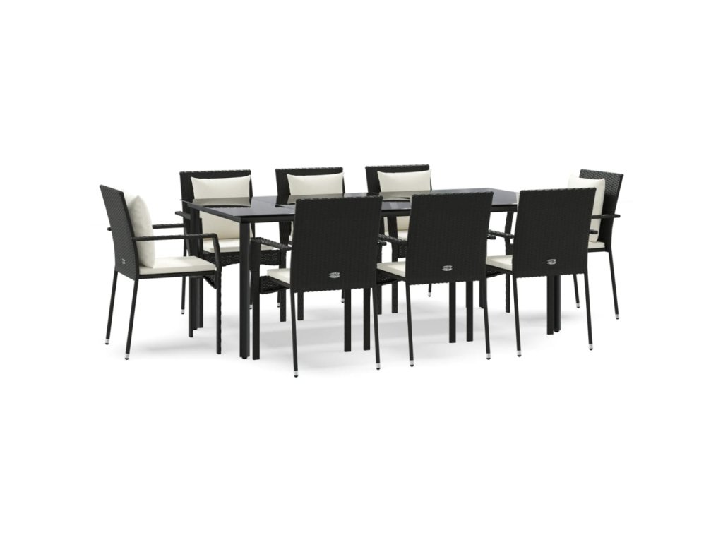 9dílný zahradní jídelní set s poduškami černý polyratan 3185112