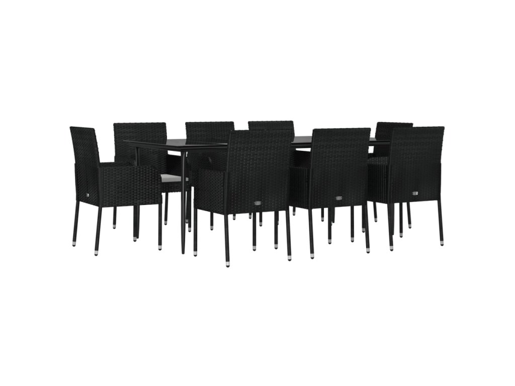 9dílný zahradní jídelní set s poduškami černý polyratan 3185147
