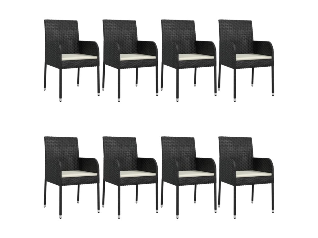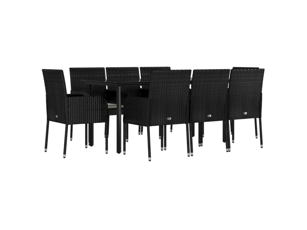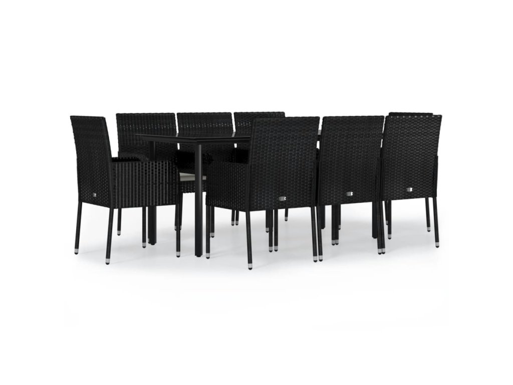 9dílný zahradní jídelní set s poduškami černý polyratan 3185158