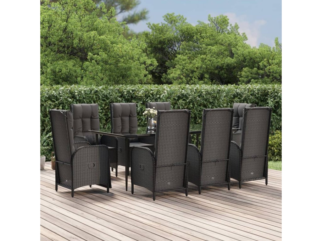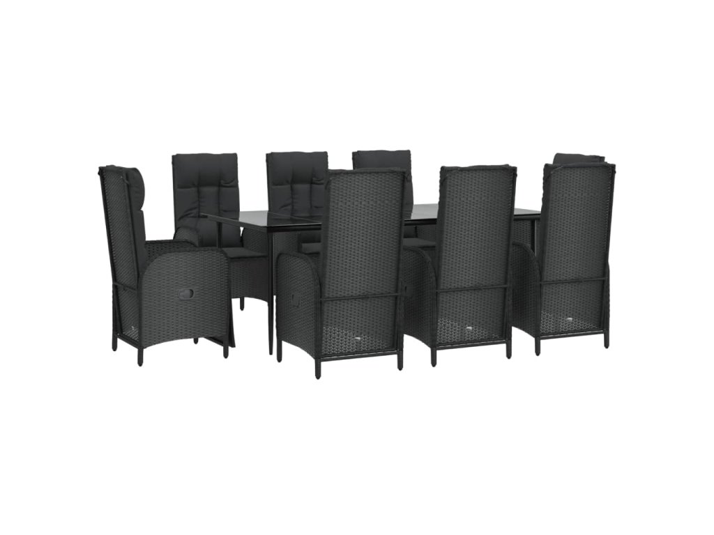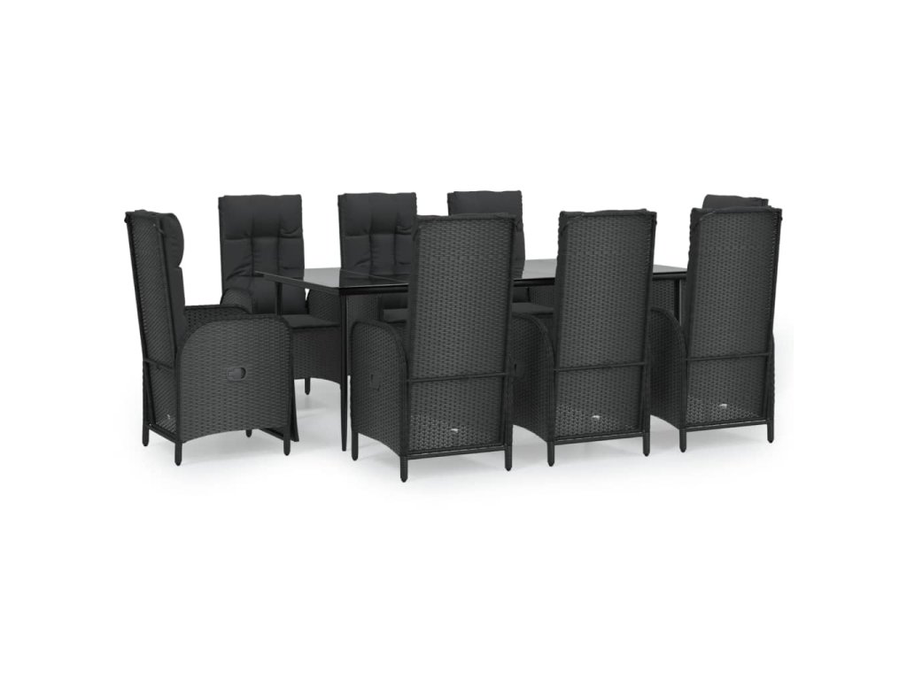 9dílný zahradní jídelní set s poduškami černý polyratan 3185176