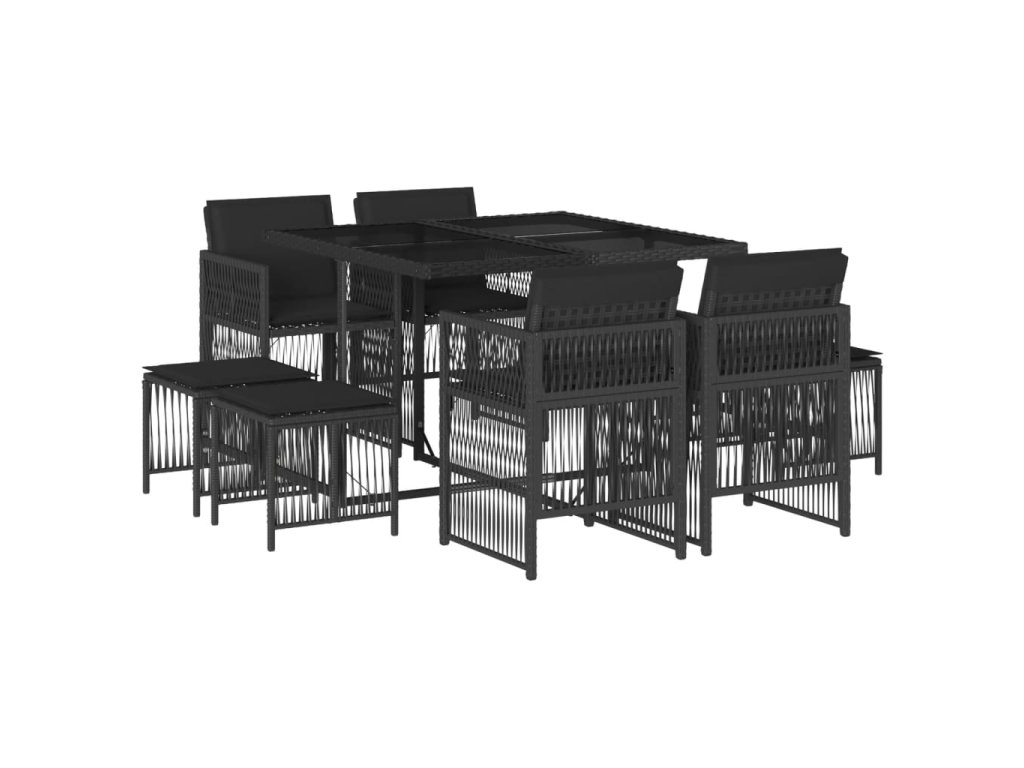 9dílný zahradní jídelní set s poduškami černý polyratan 3210955