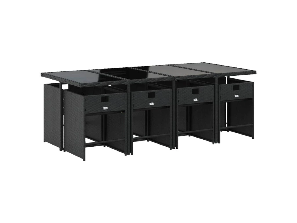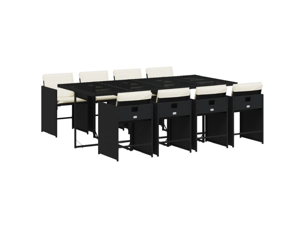 9dílný zahradní jídelní set s poduškami černý polyratan 3211098