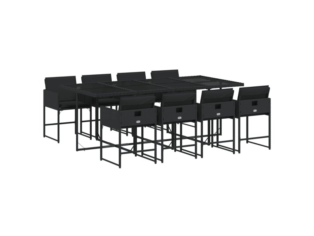 9dílný zahradní jídelní set s poduškami černý polyratan 3211279