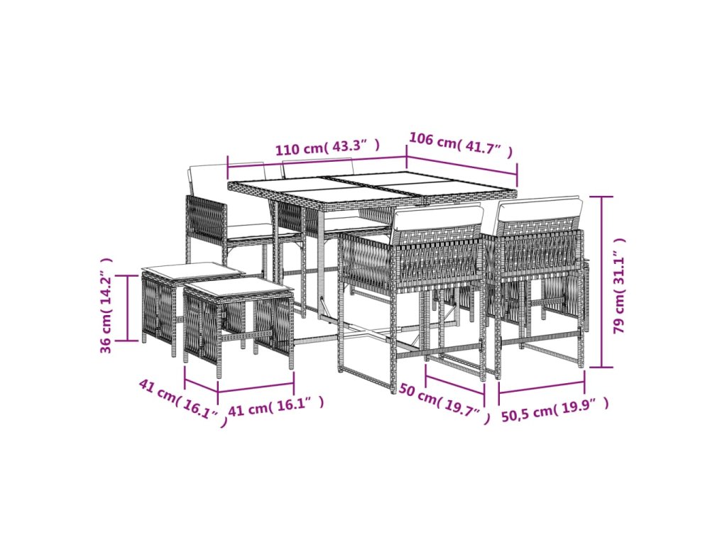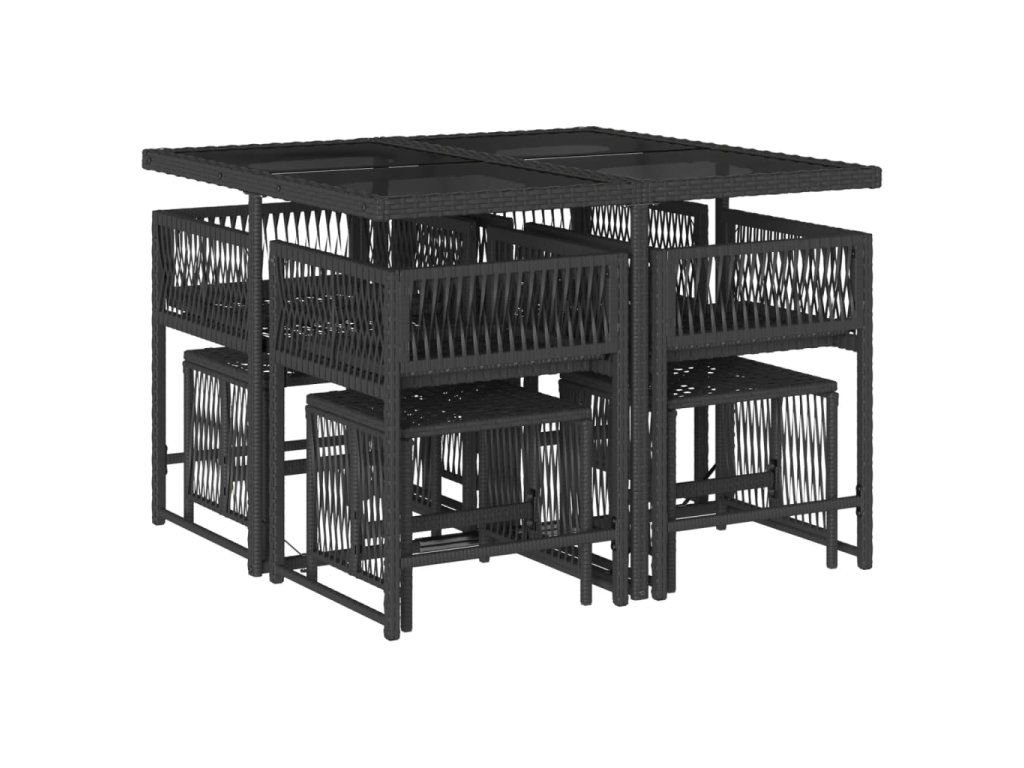 9dílný zahradní jídelní set s poduškami černý polyratan 3211494