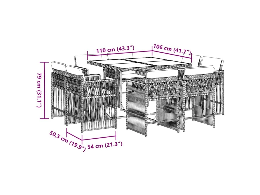 9dílný zahradní jídelní set s poduškami černý polyratan 3211734