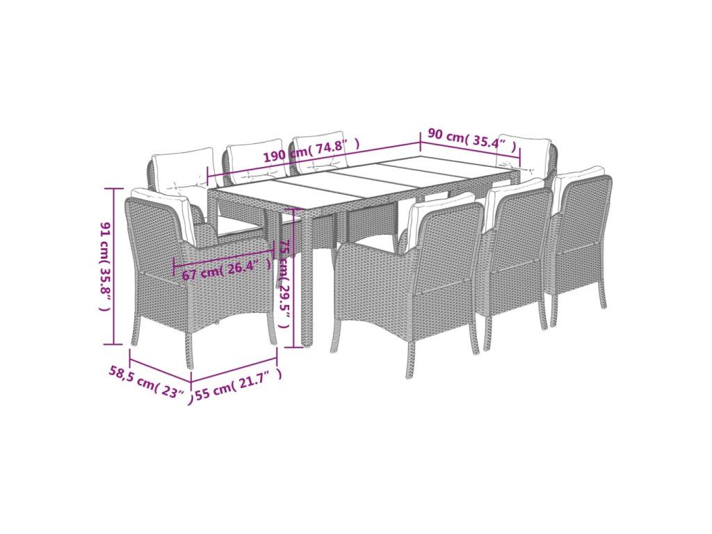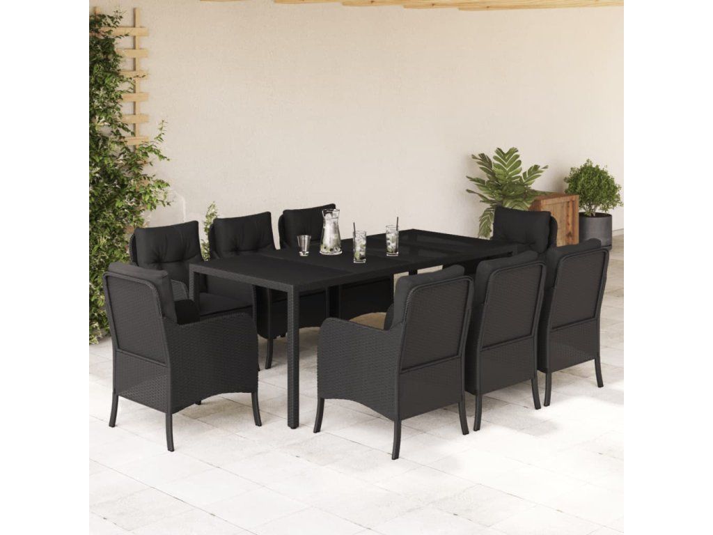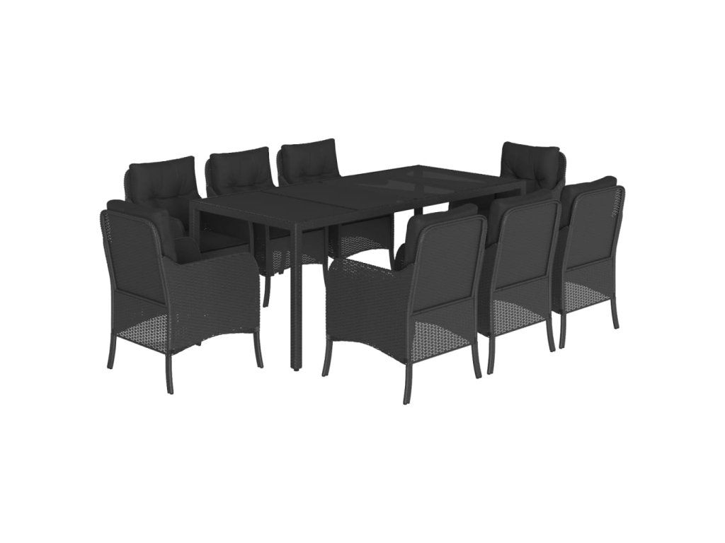 9dílný zahradní jídelní set s poduškami černý polyratan 3211853