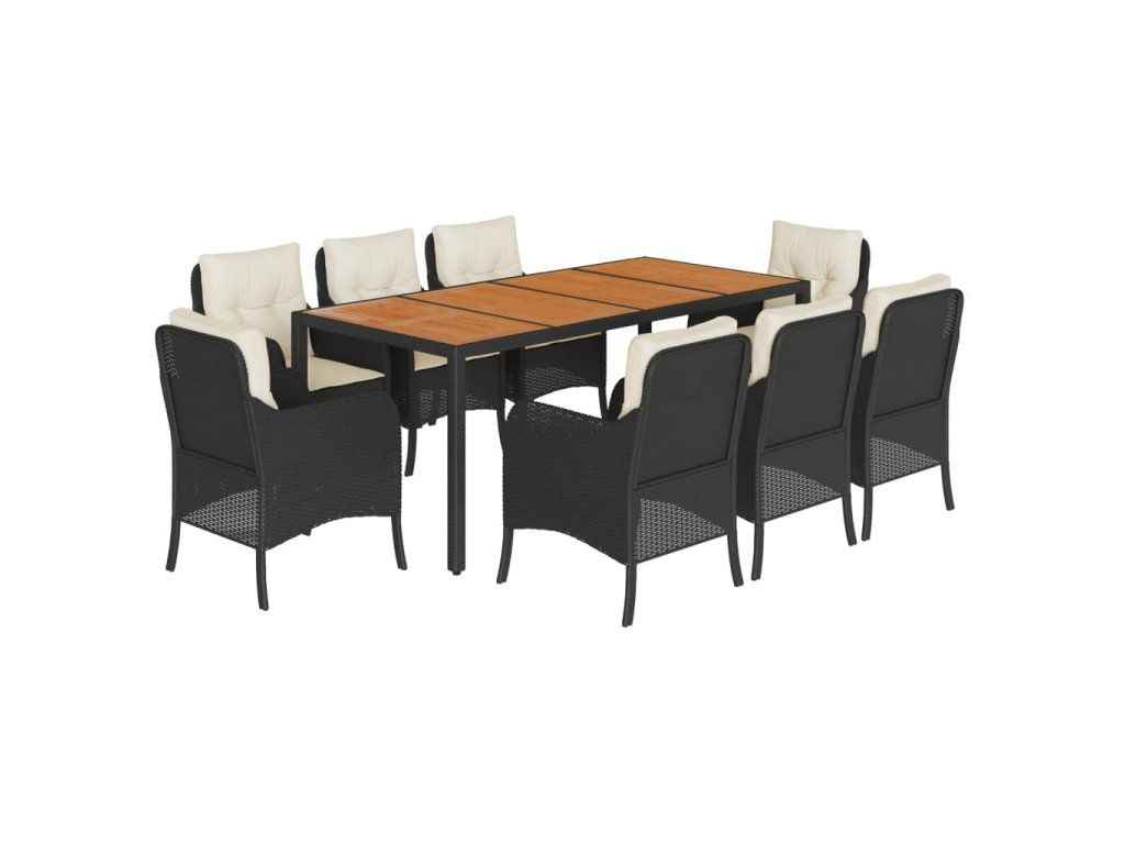 9dílný zahradní jídelní set s poduškami černý polyratan 3211865