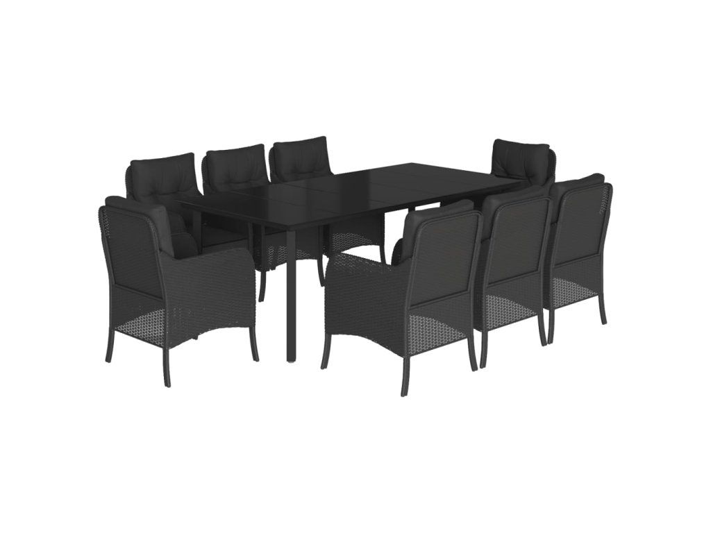 9dílný zahradní jídelní set s poduškami černý polyratan 3211933
