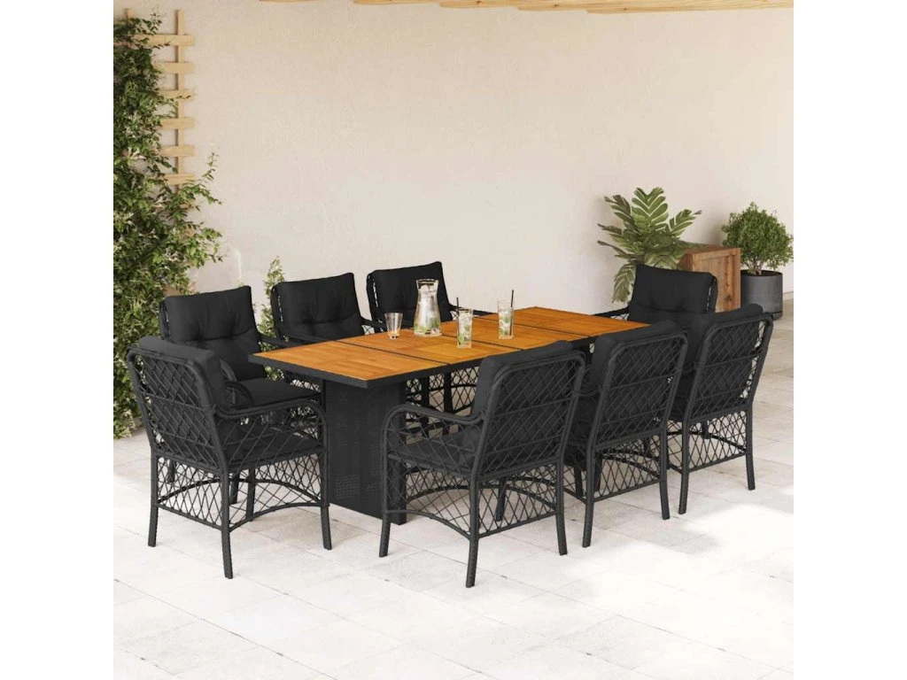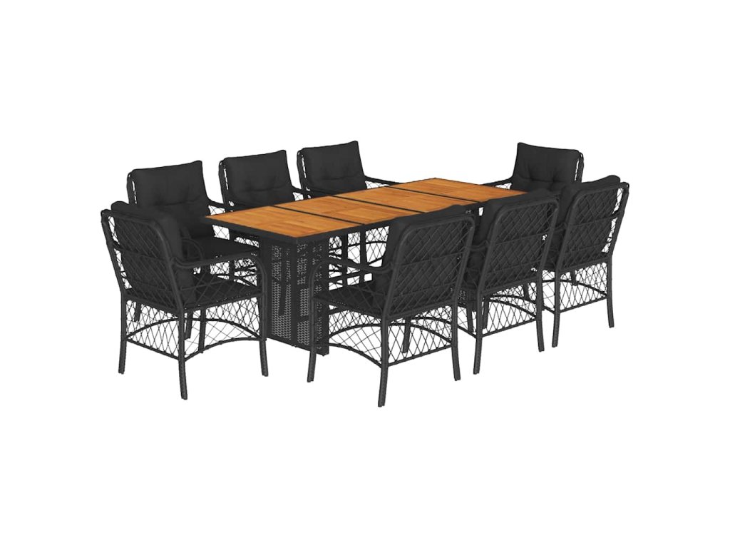 9dílný zahradní jídelní set s poduškami černý polyratan 3212073