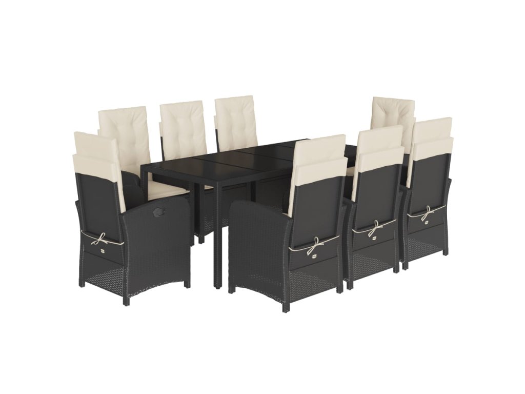 9dílný zahradní jídelní set s poduškami černý polyratan 3212202