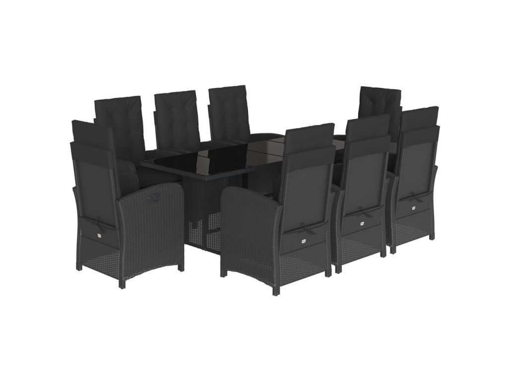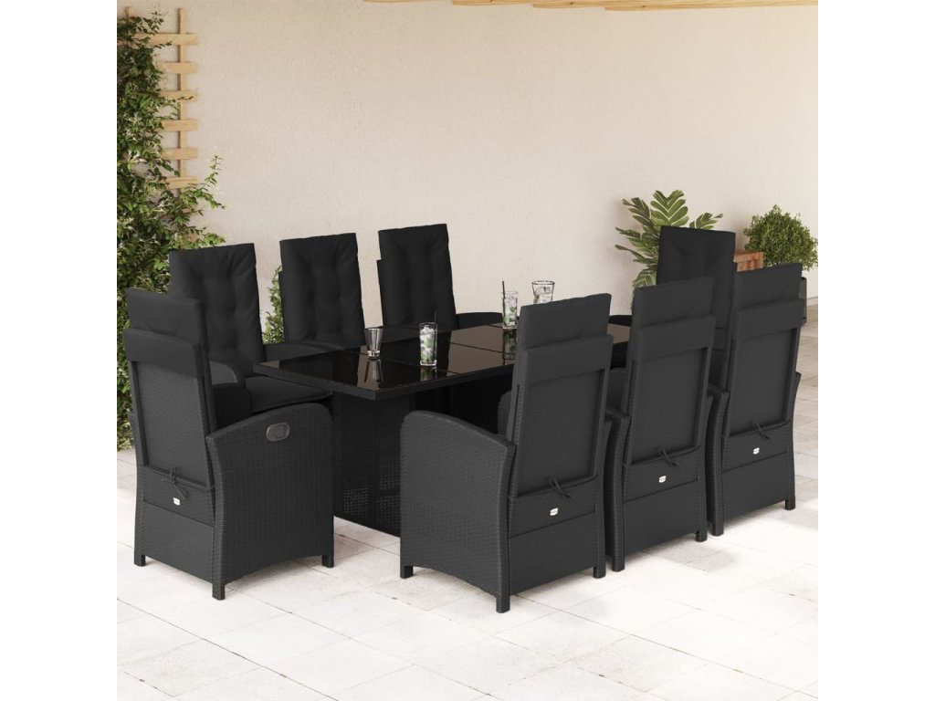9dílný zahradní jídelní set s poduškami černý polyratan 3212253