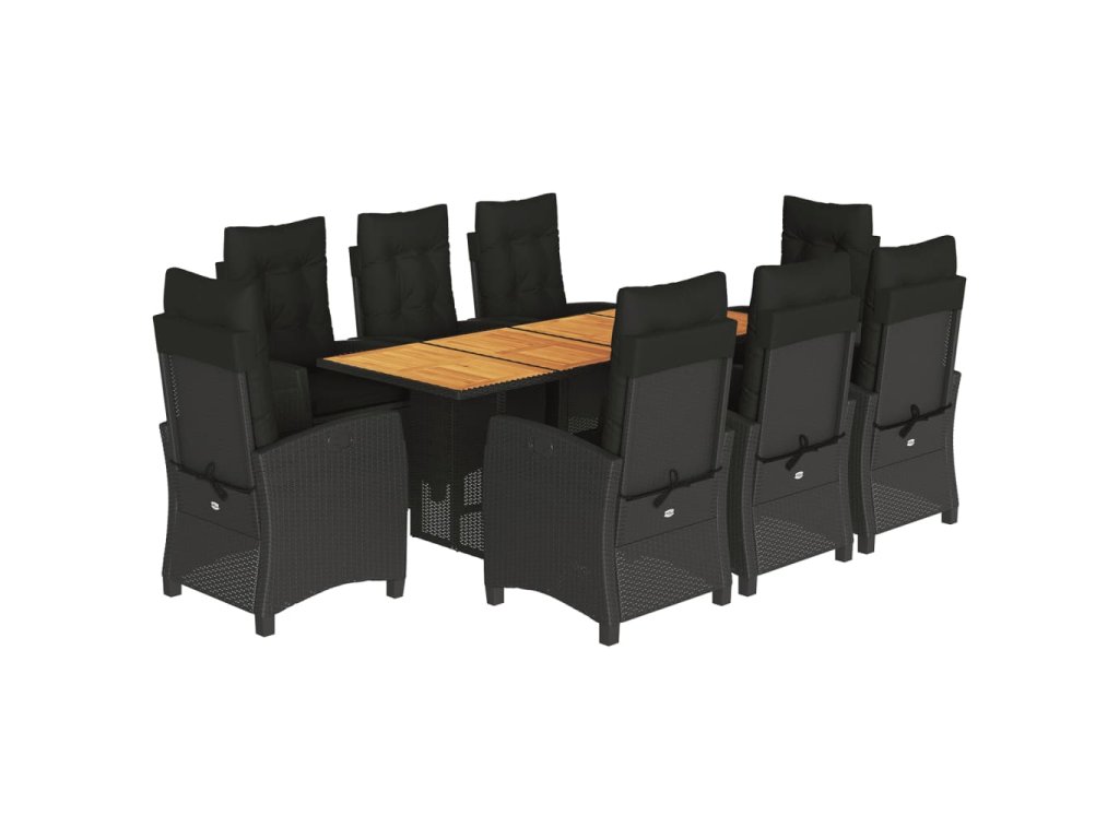 9dílný zahradní jídelní set s poduškami černý polyratan 3212708