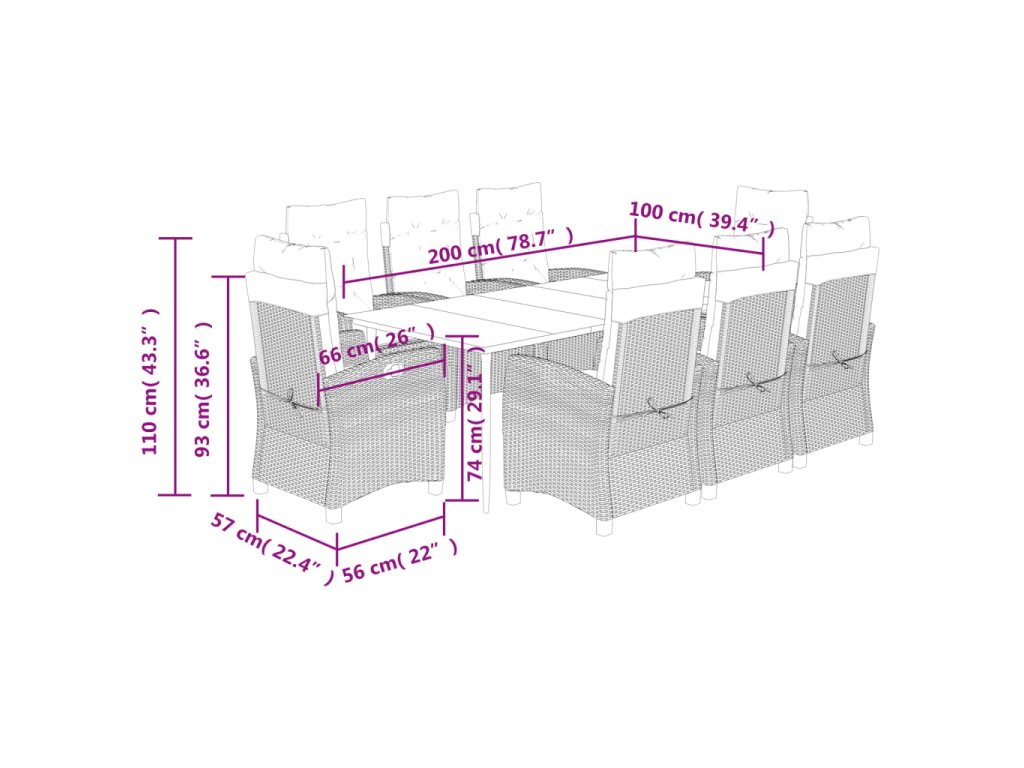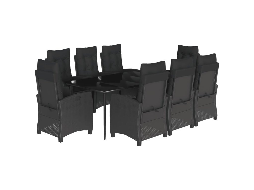 9dílný zahradní jídelní set s poduškami černý polyratan 3212751