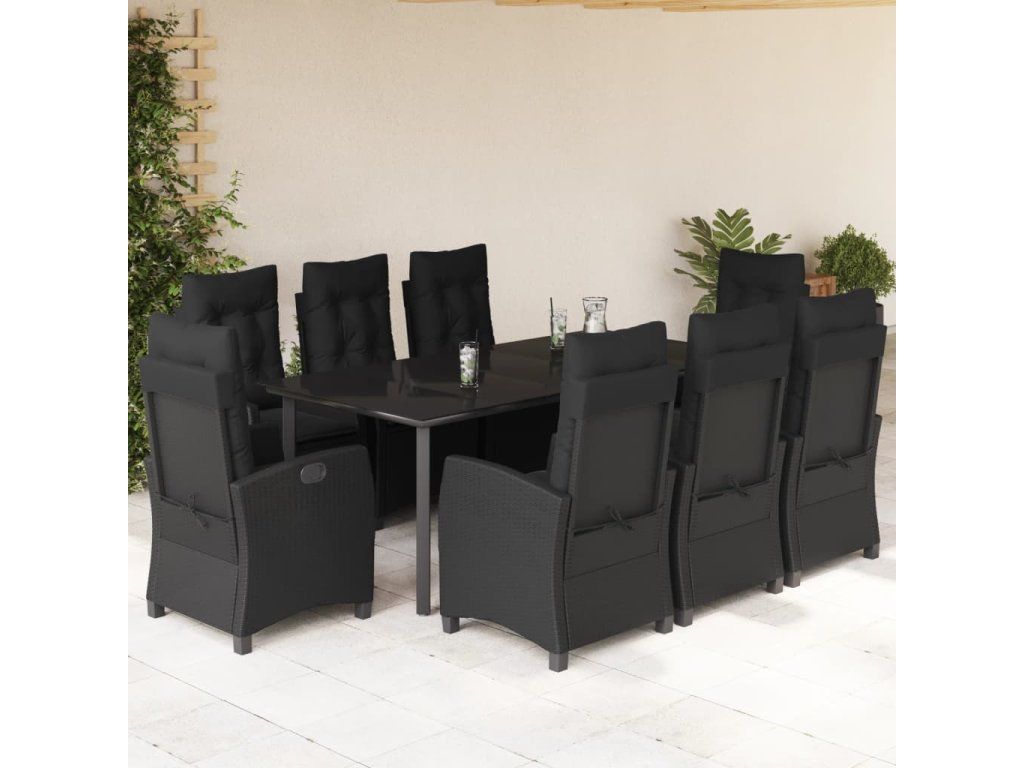 9dílný zahradní jídelní set s poduškami černý polyratan 3212760
