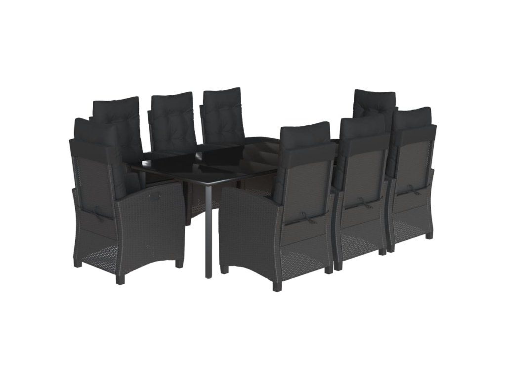9dílný zahradní jídelní set s poduškami černý polyratan 3212761