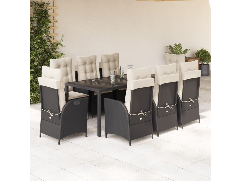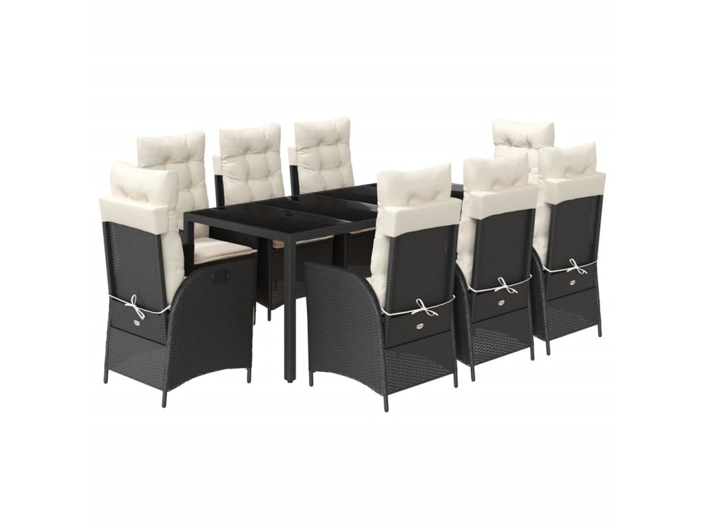 9dílný zahradní jídelní set s poduškami černý polyratan 3213066