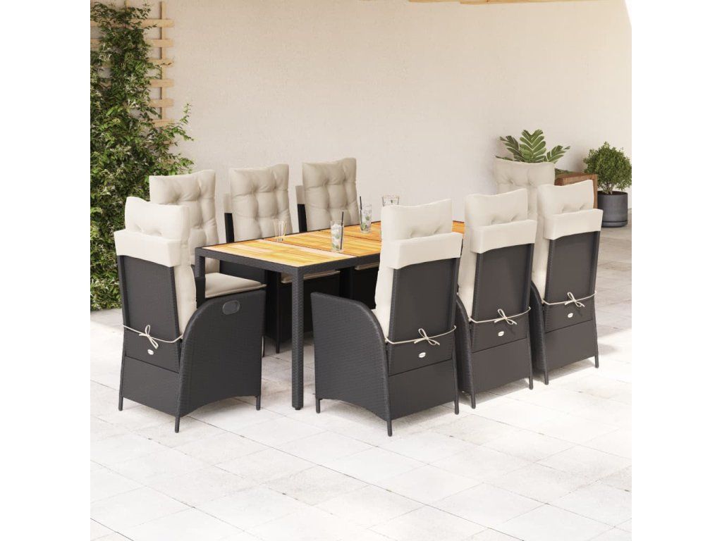 9dílný zahradní jídelní set s poduškami černý polyratan 3213092