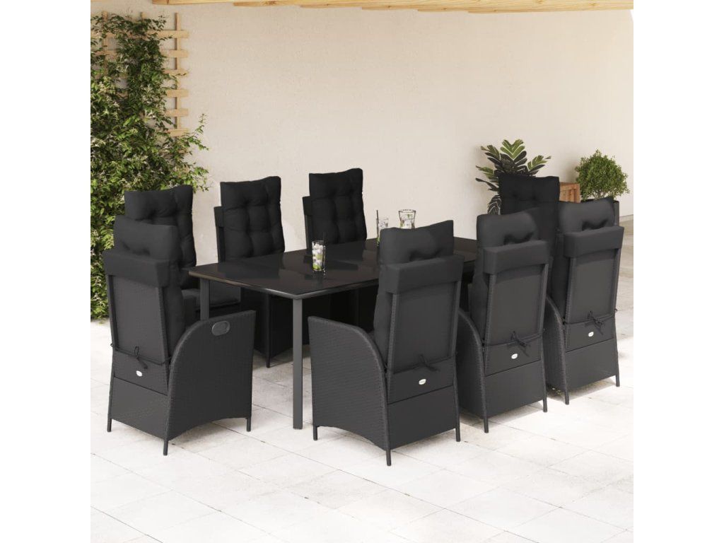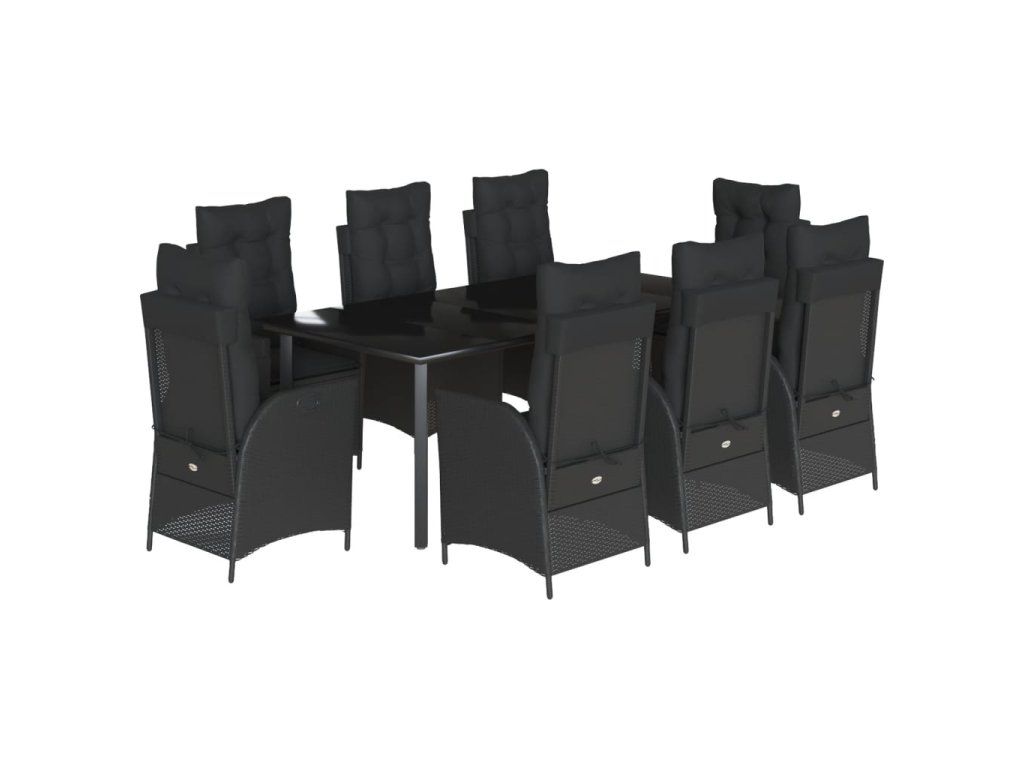 9dílný zahradní jídelní set s poduškami černý polyratan 3213193