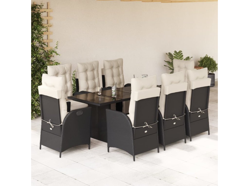 9dílný zahradní jídelní set s poduškami černý polyratan 3213351