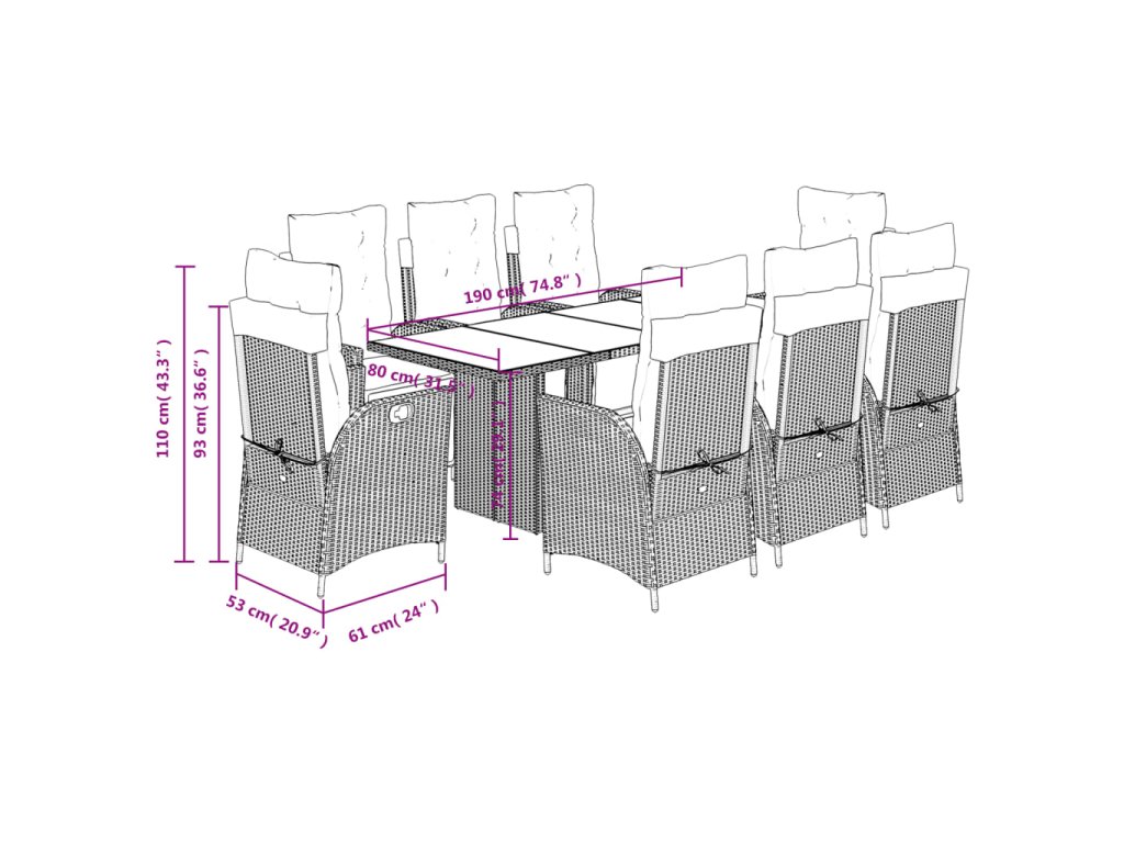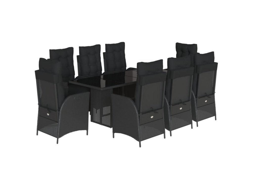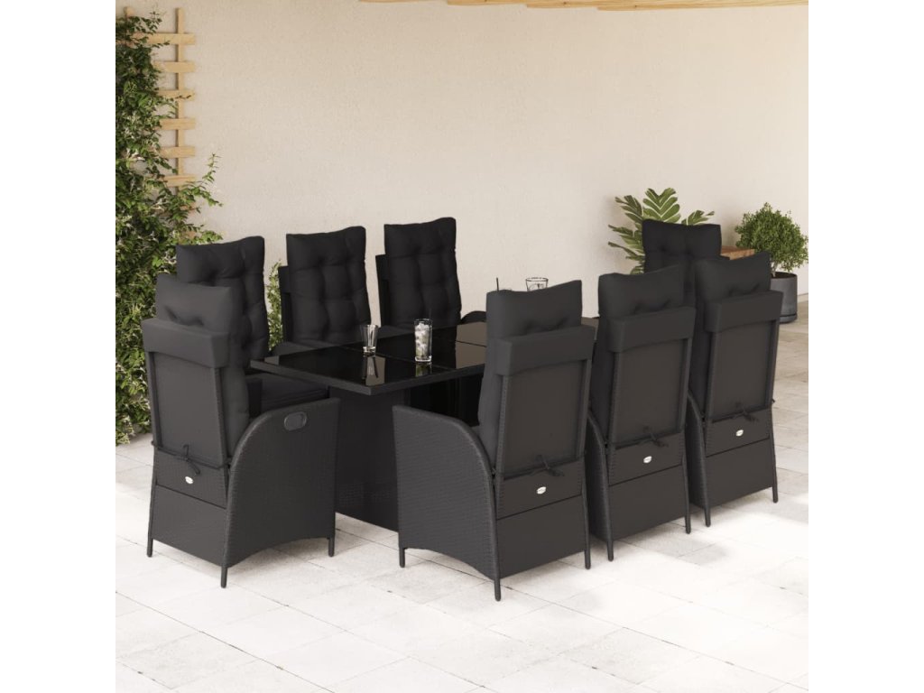 9dílný zahradní jídelní set s poduškami černý polyratan 3213353