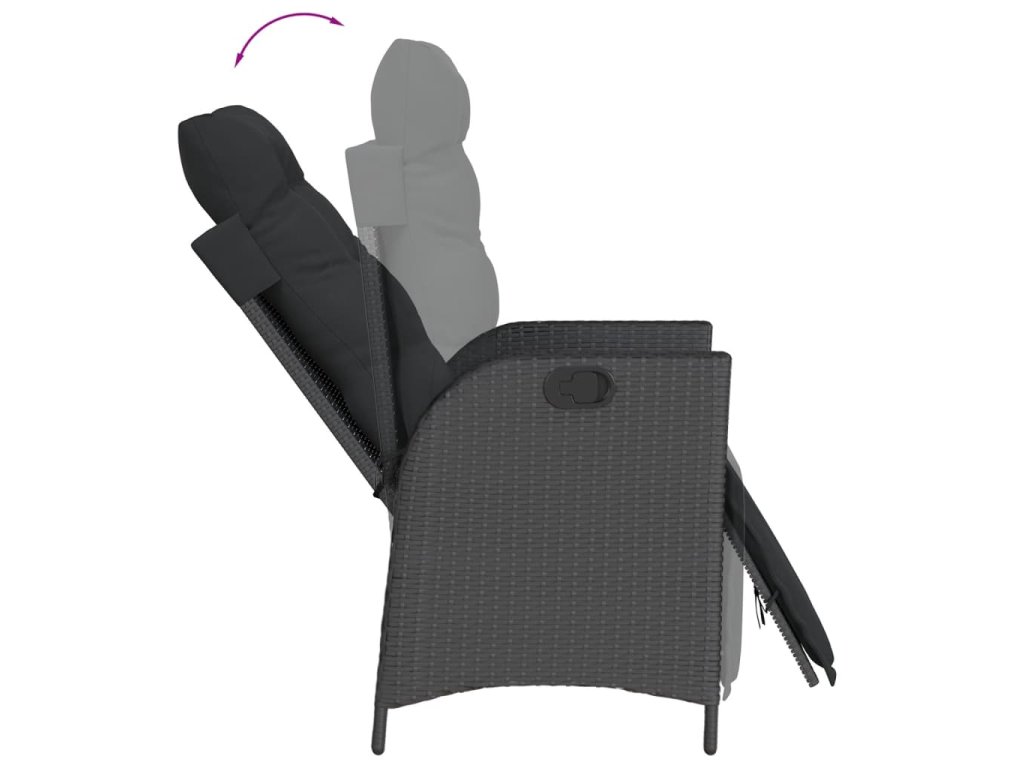 - Nastavitelné opěradlo a opěrka nohou: Tato zahradní židle je opatřena rukojetí. Zatáhnutím za ni můžete opěradlo a opěrku nohou nastavit do libovolné polohy. Stejně tak je můžete rychle vrátit do původní pozice.