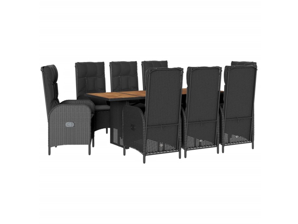 9dílný zahradní jídelní set s poduškami černý polyratan 3213515