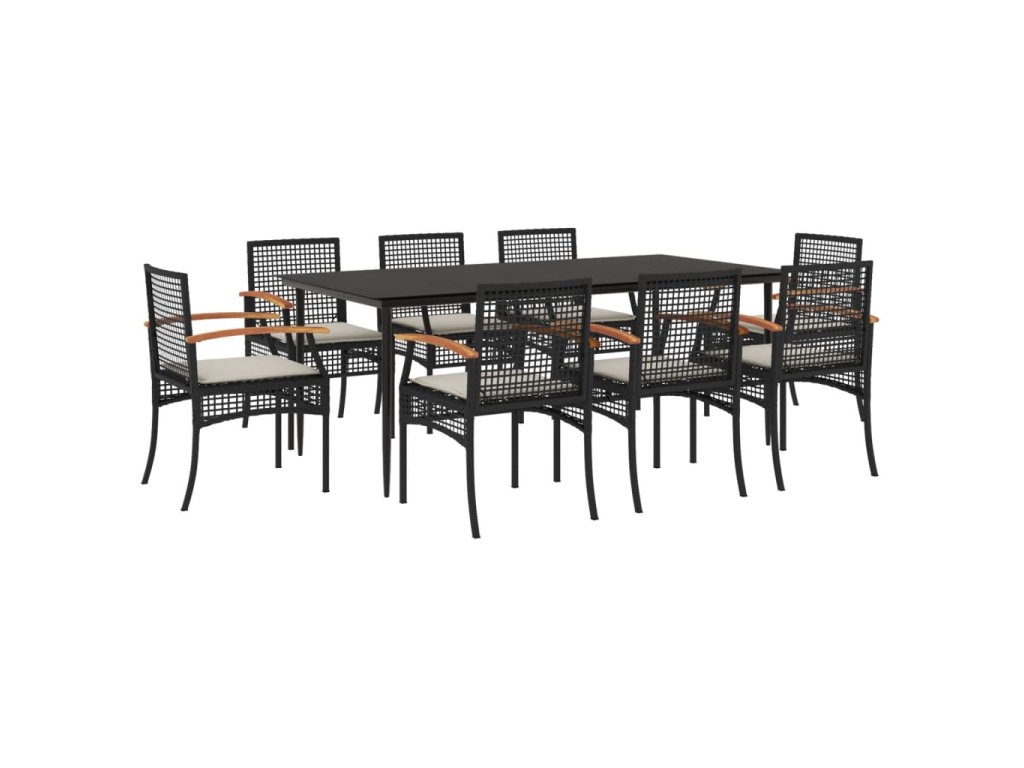 9dílný zahradní jídelní set s poduškami černý polyratan 3213602
