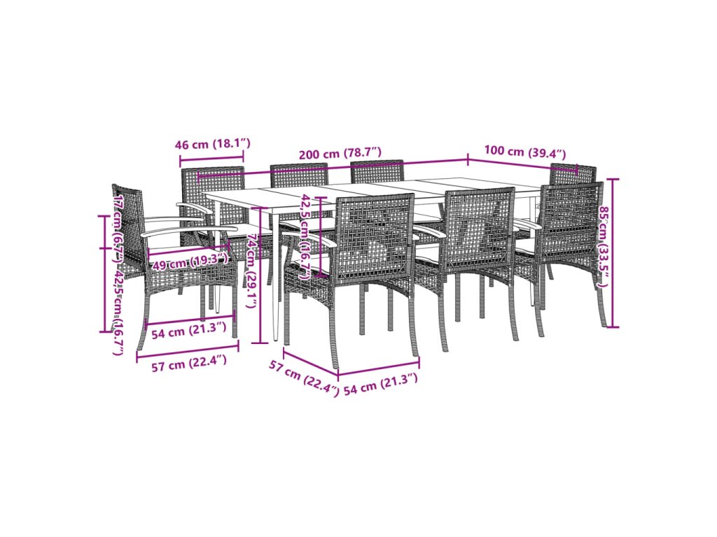 - Robustní a stabilní rám: Ocelový rám s práškovým nástřikem zajišťuje, že zahradní nábytek je pevný a stabilní pro každodenní venkovní použití.