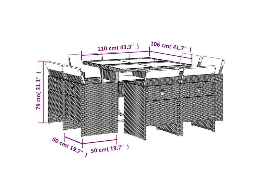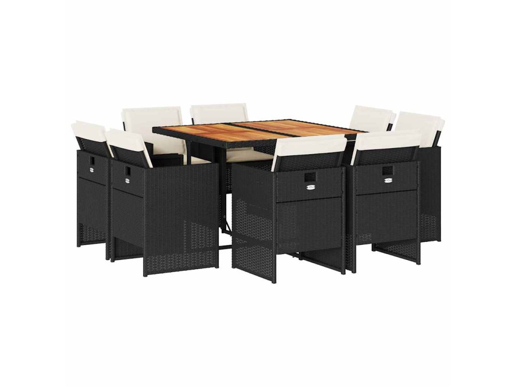 9dílný zahradní jídelní set s poduškami černý polyratan 3277790