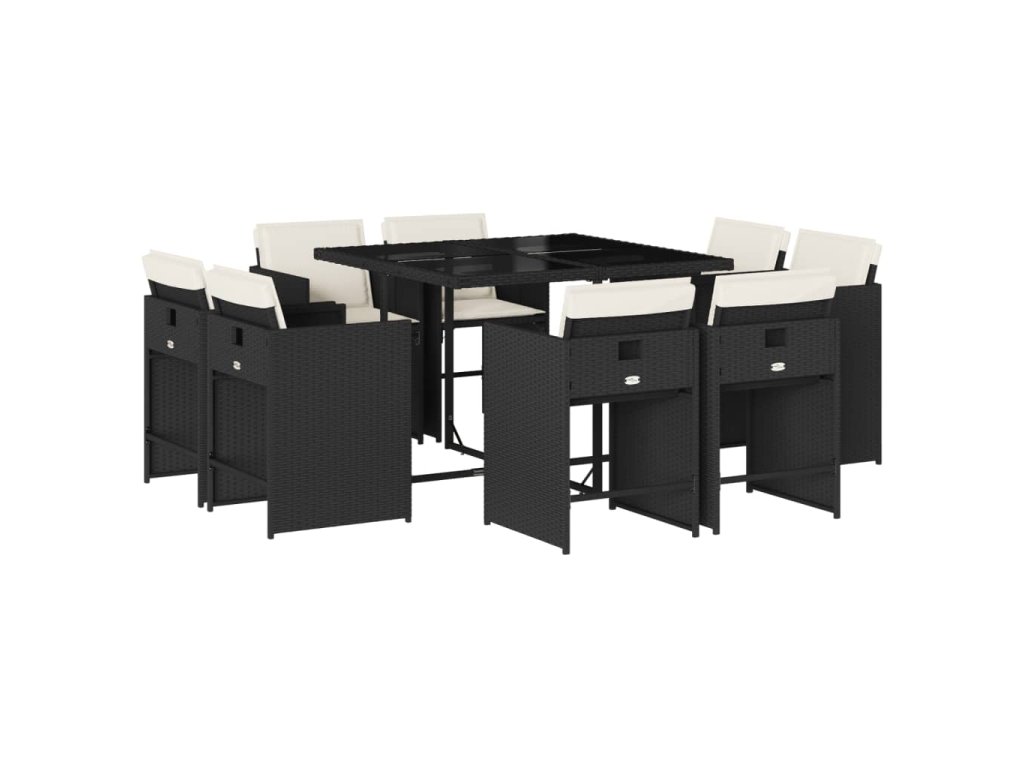 9dílný zahradní jídelní set s poduškami černý polyratan 3277961