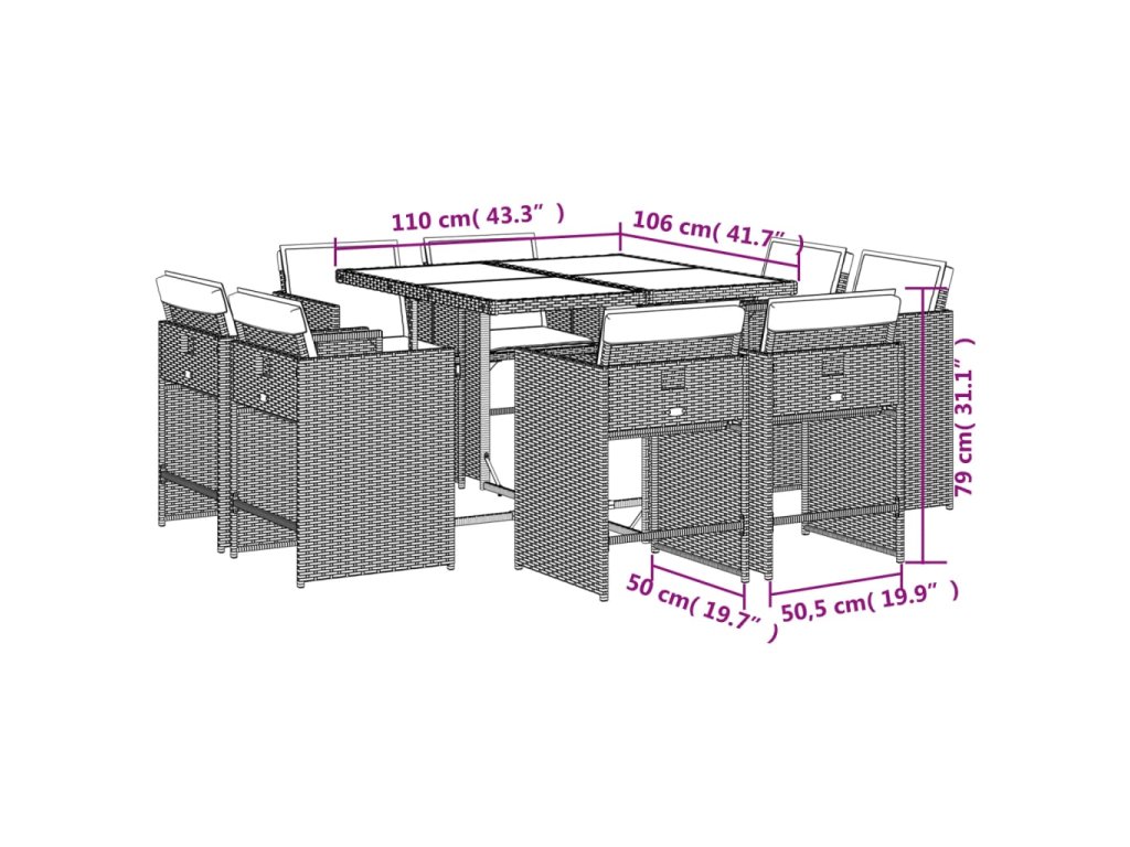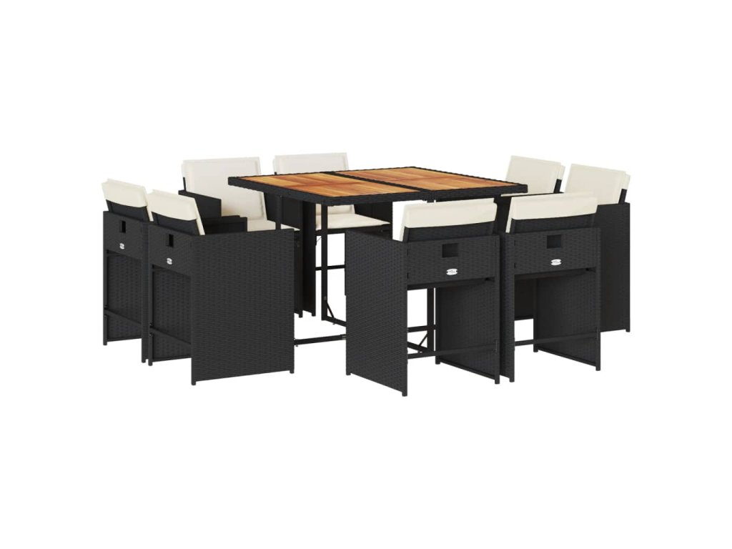 9dílný zahradní jídelní set s poduškami černý polyratan 3277970