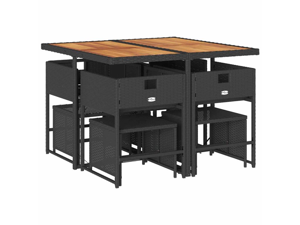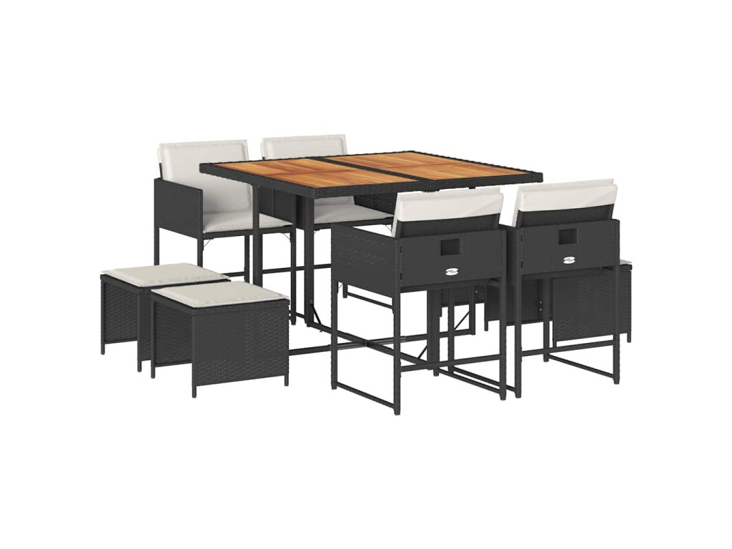 9dílný zahradní jídelní set s poduškami černý polyratan 3278090