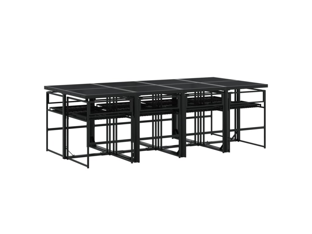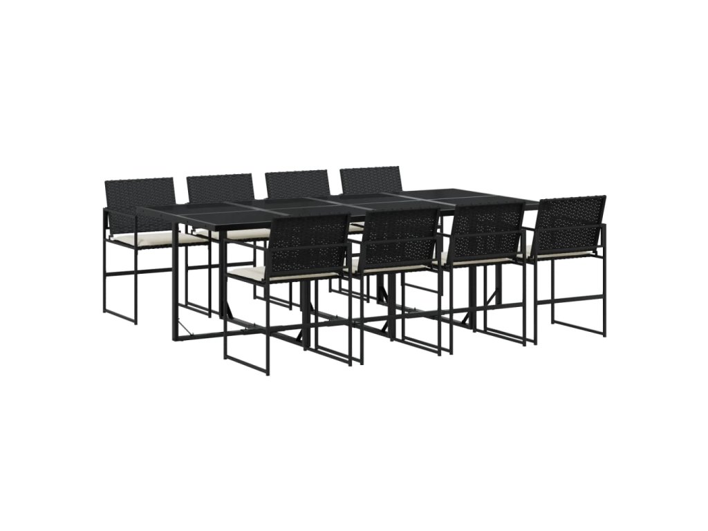 9dílný zahradní jídelní set s poduškami černý polyratan 3295060
