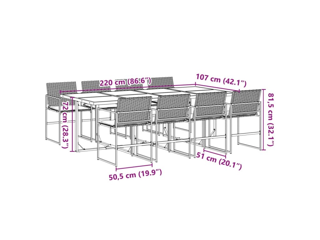 - Robustní a stabilní rám: Ocelový rám s práškovým nástřikem zajišťuje, že zahradní nábytek je pevný a stabilní pro každodenní venkovní použití.