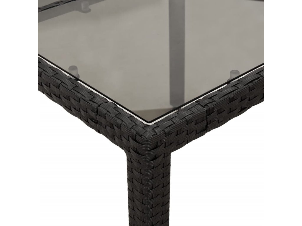 - Materiál: PE ratan, práškově lakovaná ocel, tvrzené sklo