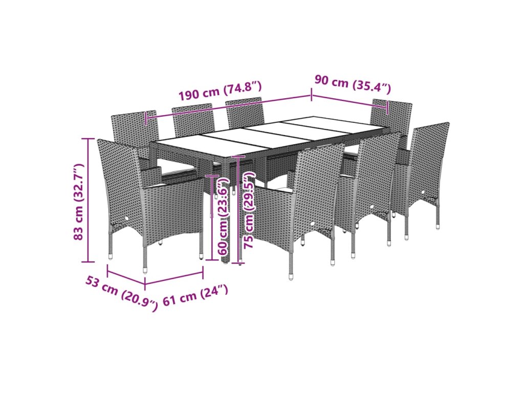 - Skleněná deska stolu: Deska venkovního stolu je zhotovena ze silného a odolného tvrzeného skla, takže ji snadno očistíte vlhkým hadříkem a zároveň do vašeho venkovního prostoru vnese nádech elegance.