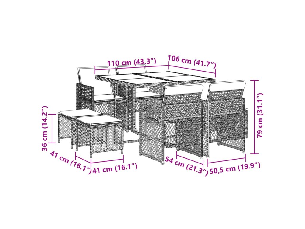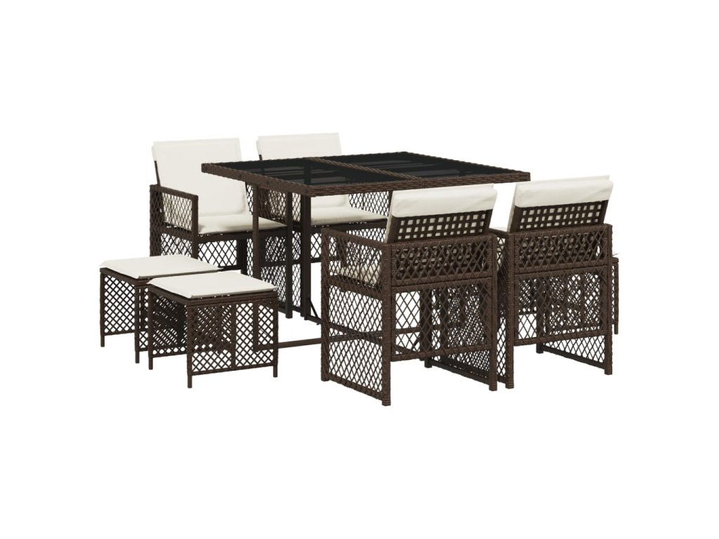 9dílný zahradní jídelní set s poduškami hnědý polyratan 3210777