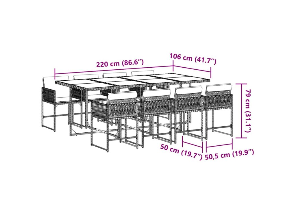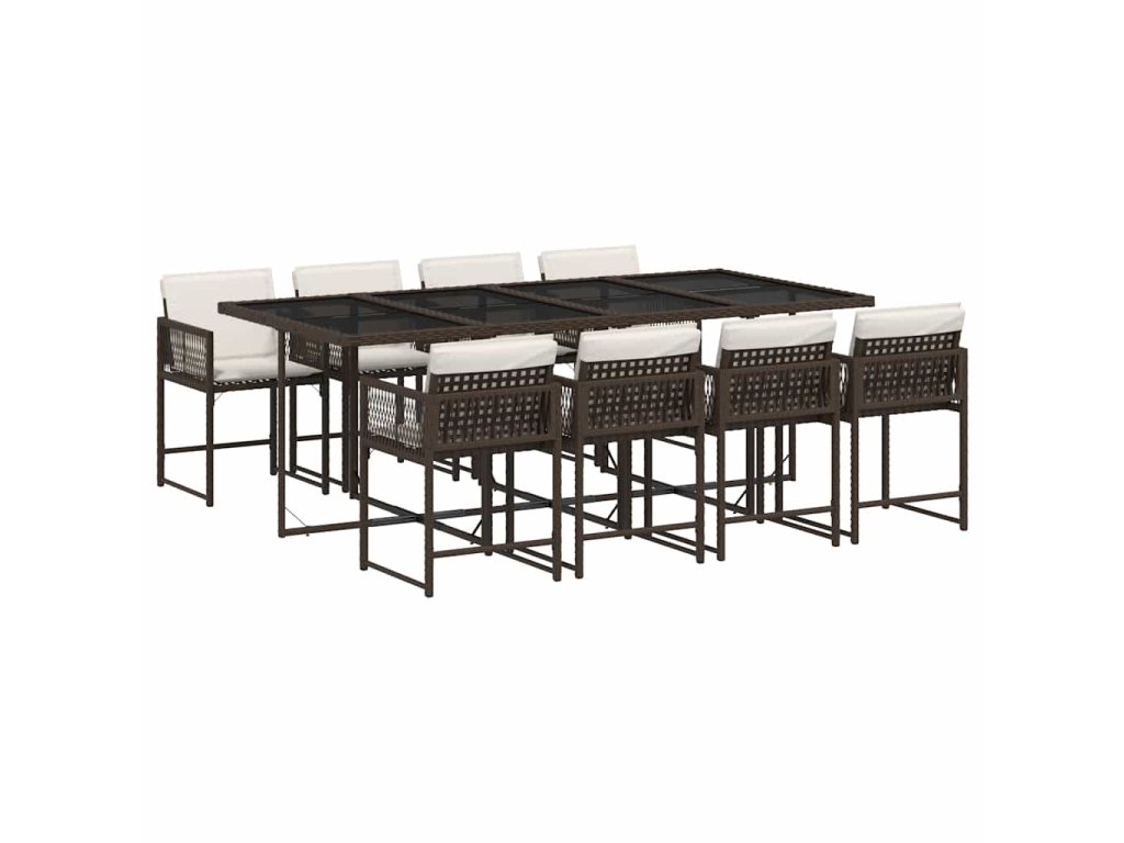 9dílný zahradní jídelní set s poduškami hnědý polyratan 3211461