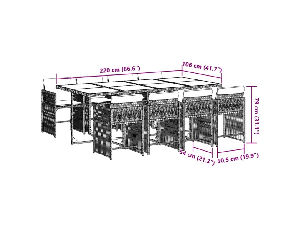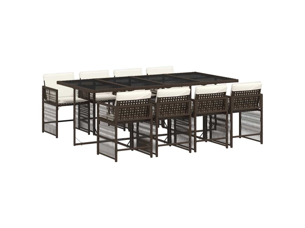 9dílný zahradní jídelní set s poduškami hnědý polyratan 3211641