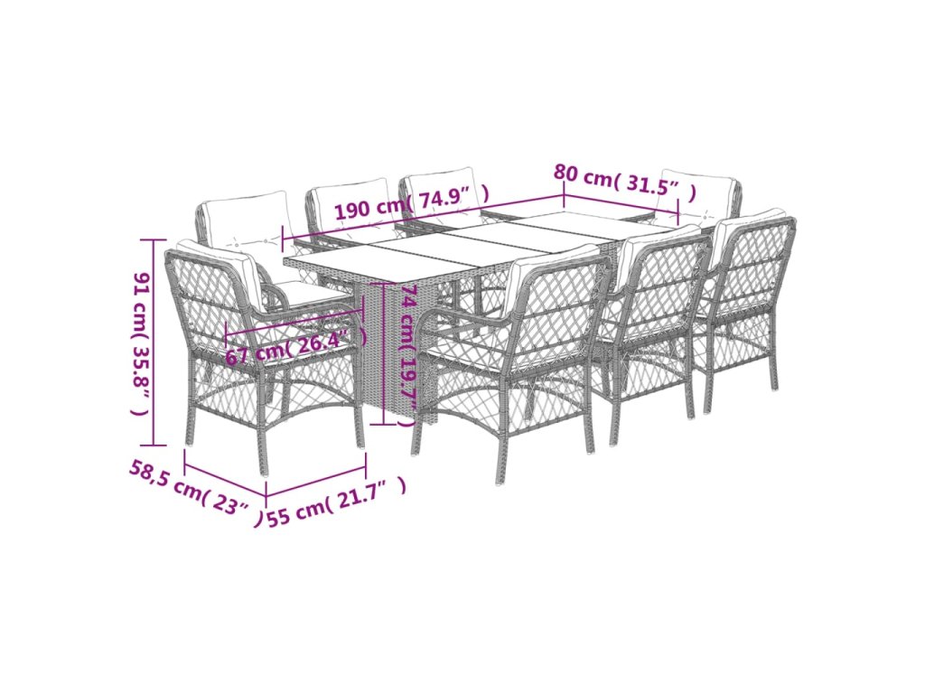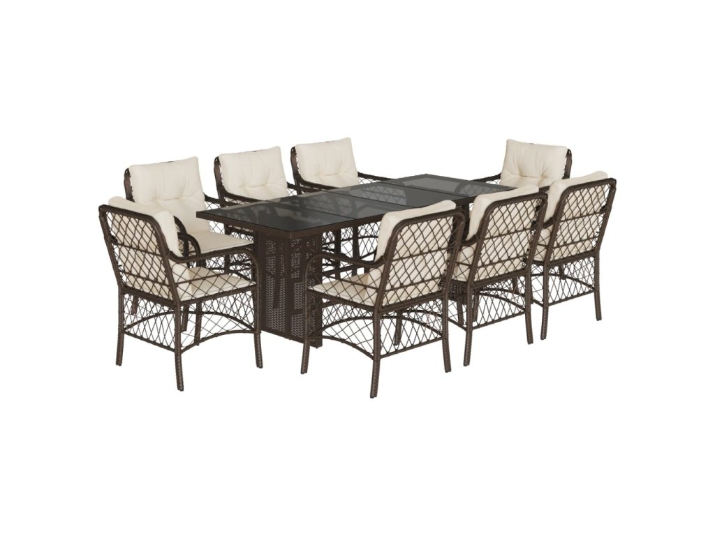9dílný zahradní jídelní set s poduškami hnědý polyratan 3212059