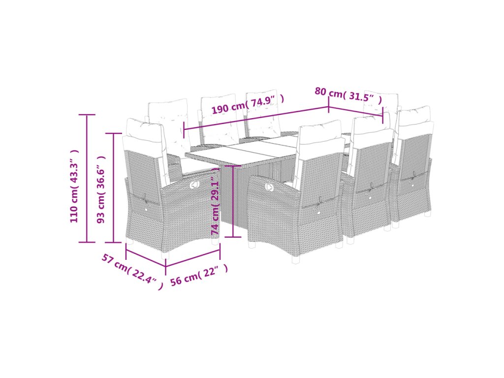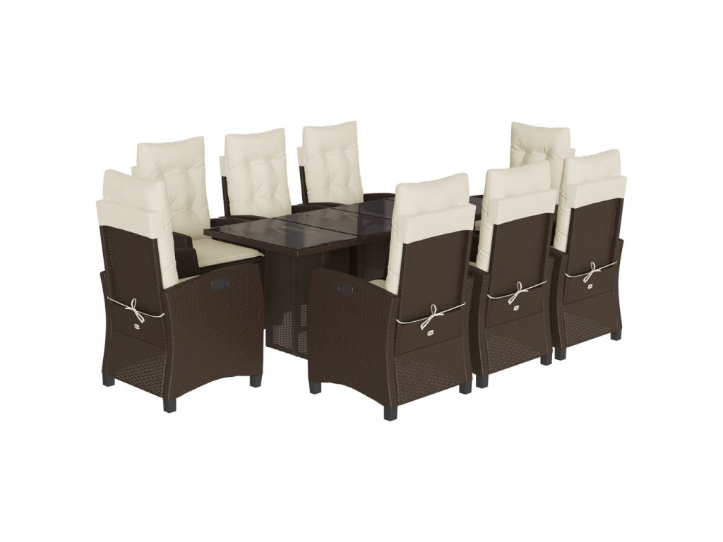 9dílný zahradní jídelní set s poduškami hnědý polyratan 3212687